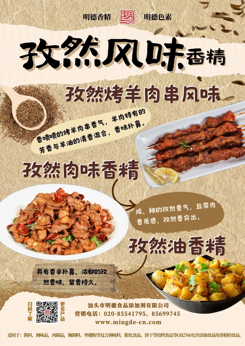 明德孜然風(fēng)味系列香精 濃郁孜然 烤香誘人汕頭市明德食品添加劑有限公司推出的孜然風(fēng)味系列香精,涵蓋孜然烤羊肉串風(fēng)味、孜然肉味香精、孜然油香精等多種調性。產(chǎn)品風(fēng)味真實(shí),香氣穩定,適用于肉制品、調味料、休閑零食、腌制料及復合調味等B端應用,幫助工廠(chǎng)快速打造具有記憶點(diǎn)的孜然風(fēng)味。
