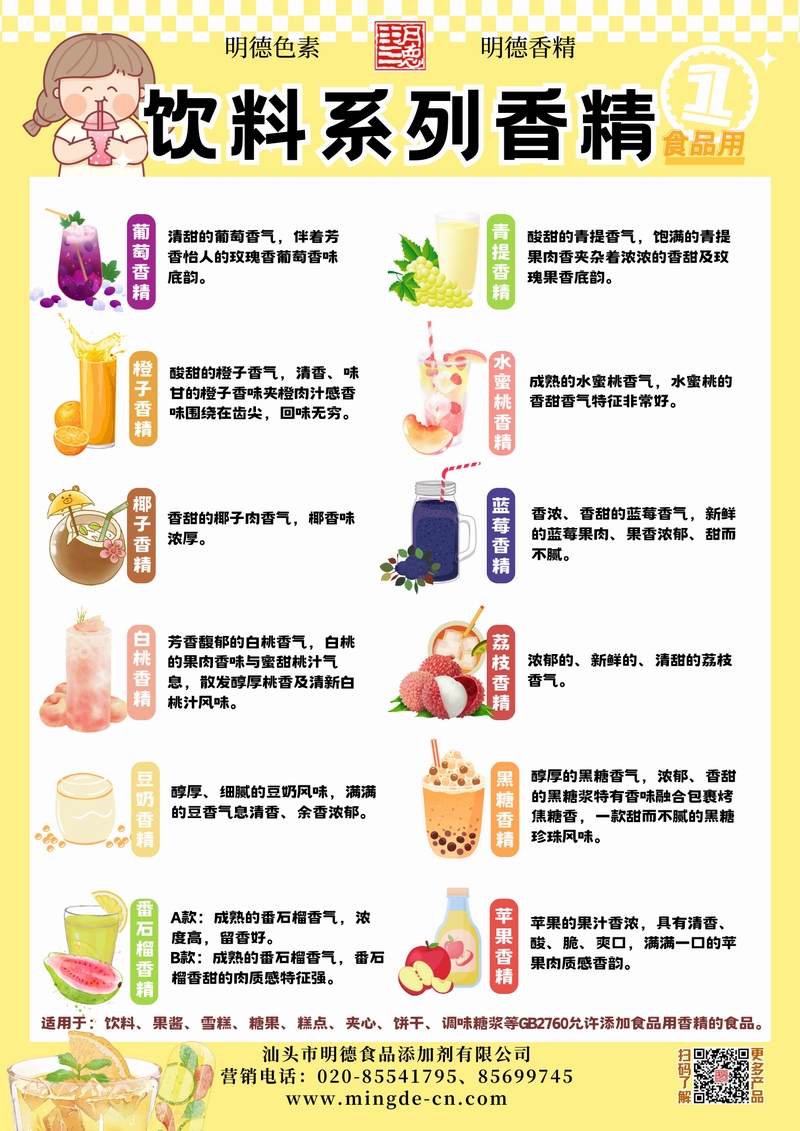 如需獲取不同版本風(fēng)味樣品或配方方案,歡迎聯(lián)系明德團隊。我們致力于為食品工廠(chǎng)提供真實(shí)、安全、高性?xún)r(jià)比的香精解決方案。