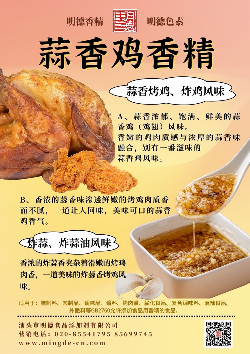 明德蒜香風(fēng)味系列香精 多級蒜香 覆蓋多場(chǎng)景汕頭市明德食品添加劑有限公司推出的蒜香風(fēng)味系列香精,覆蓋水溶性、油溶性與粉末等多種形態(tài),既能呈現新鮮大蒜、炸蒜、熟蒜油等不同調性,又兼顧耐溫與留香表現,適用于醬料、肉制品、調味品、休閑零食及復合調味等B端應用。以下為本系列核心單品與香氣描述